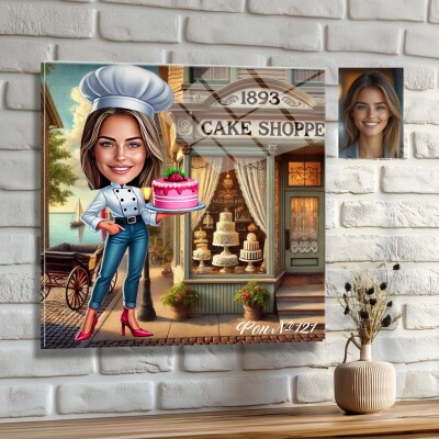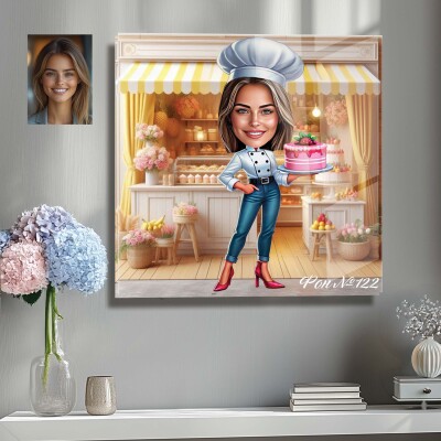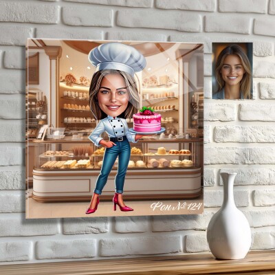 Стъклена карикатура на жена сладкар - Вкусната пекарна
