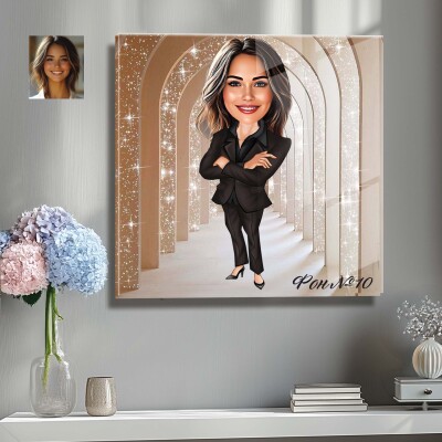 Стъклена карикатура на жена абсолвент - Дипломиране