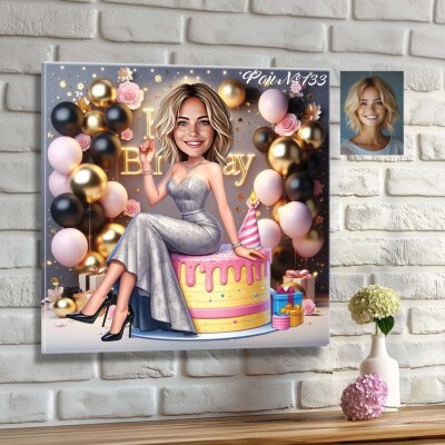 Стъклена карикатура на жена с балони - Честит рожден ден!