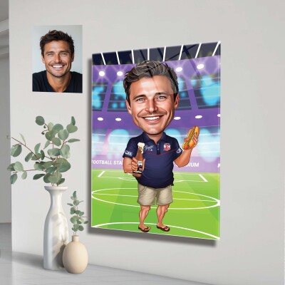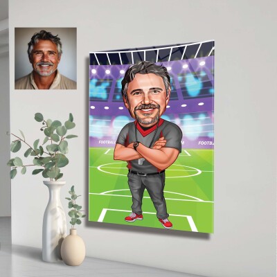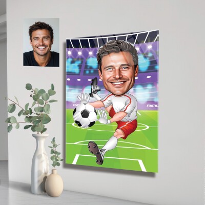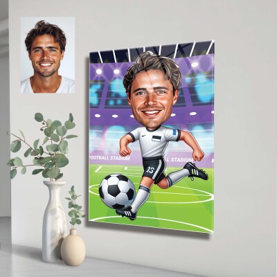 Стъклена карикатура на мъж футболист
