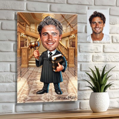 Стъклена карикатура на мъж съдия - Правосъдие