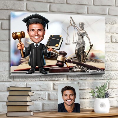 Стъклена карикатура на мъж - адвокат