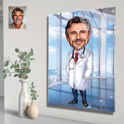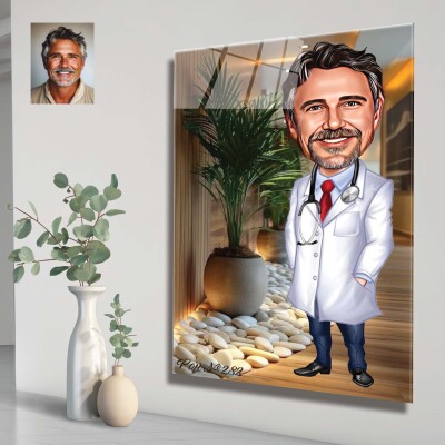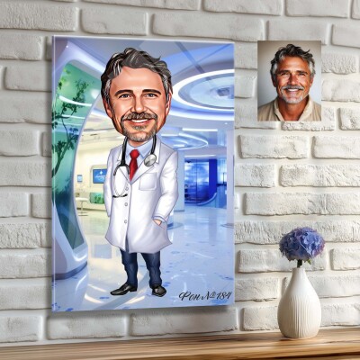 Стъклена карикатура на мъж лекар