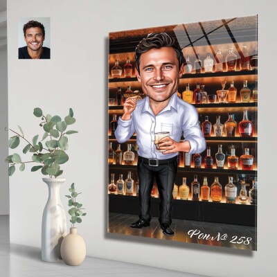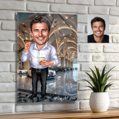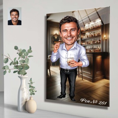 Стъклена карикатура на мъж - шеф с пура и питие