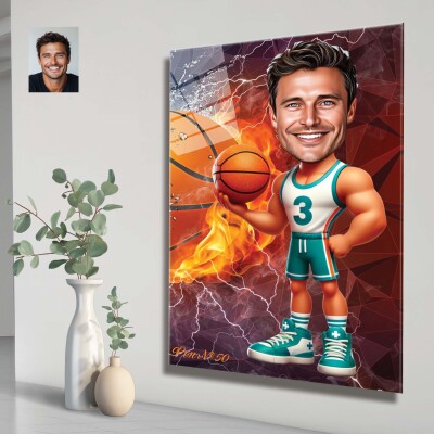 Стъклена карикатура на мъж баскетболист