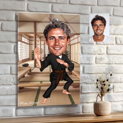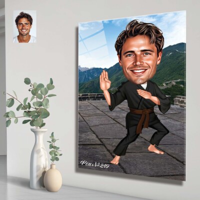 Стъклена карикатура на мъж каратист