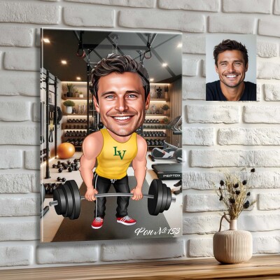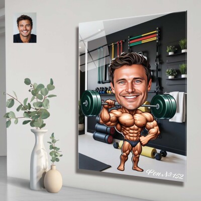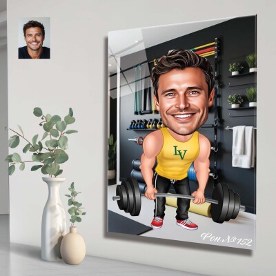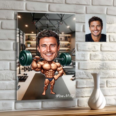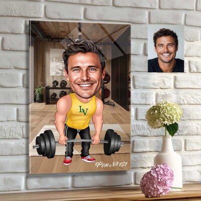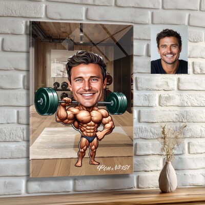 Стъклена карикатура на мъж щангист