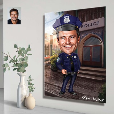 Стъклена карикатура на мъж полицай - вариант 2