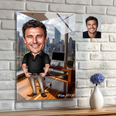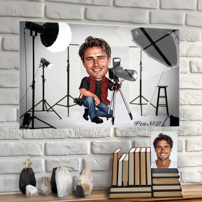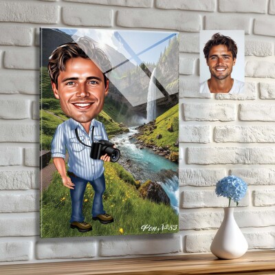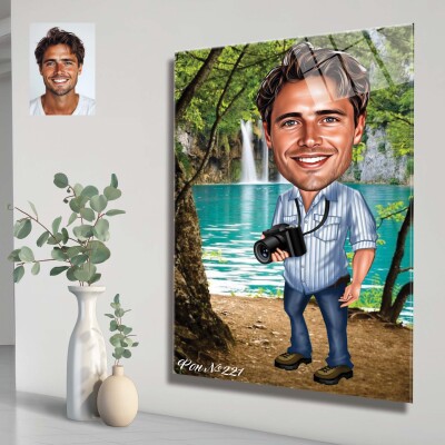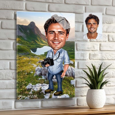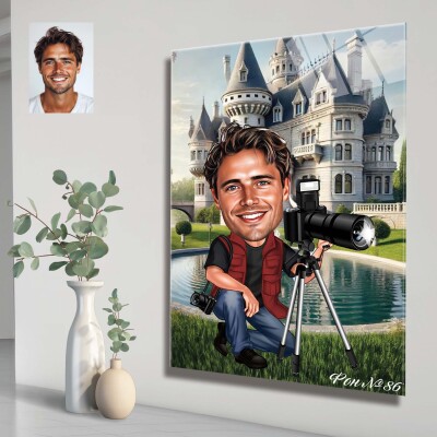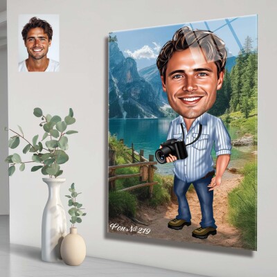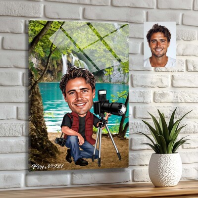 Стъклена карикатура на мъж фотограф (Вариант 2)