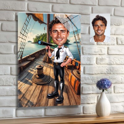 Стъклена карикатура на мъж моряк - Капитан на кораб