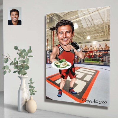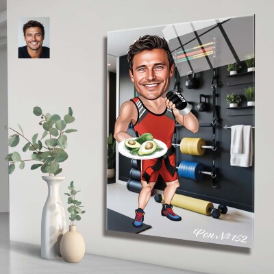 Стъклена карикатура на мъж спортист - Здравословен живот
