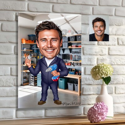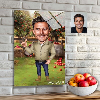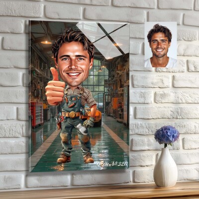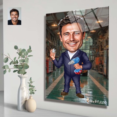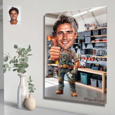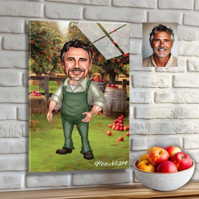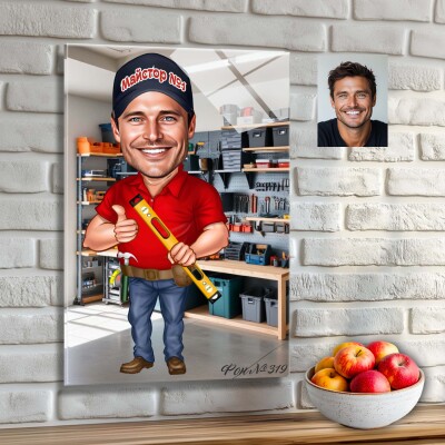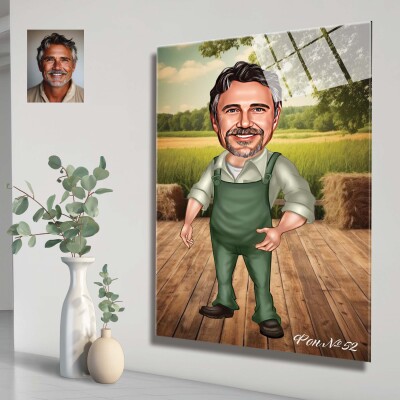 Стъклена карикатура на мъж земеделец - тракторист (вариант 2)