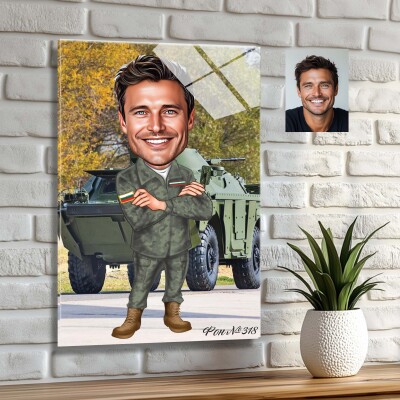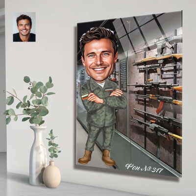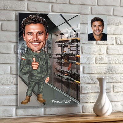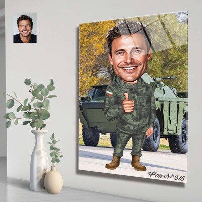 Стъклена карикатура на мъж в униформа - военен (вариант 2)