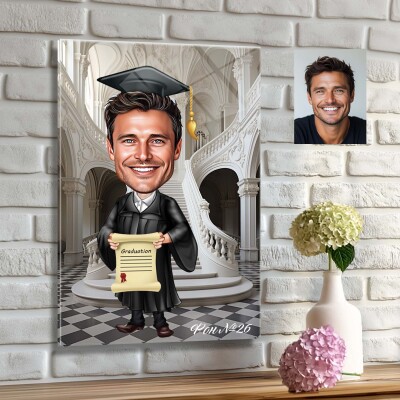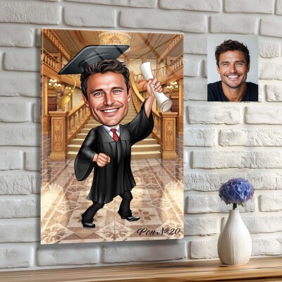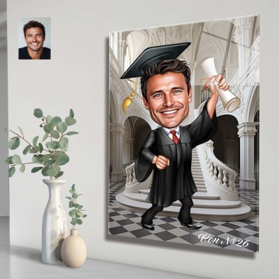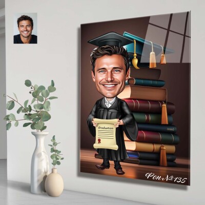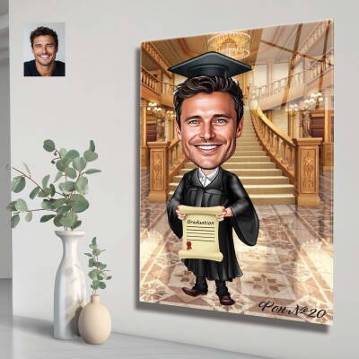 Стъклена карикатура на мъж абсолвент - Завършване (вариант 3)