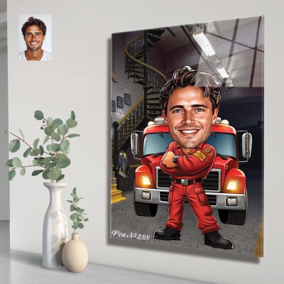 Стъклена карикатура на мъж пожарникар (вариант 2)