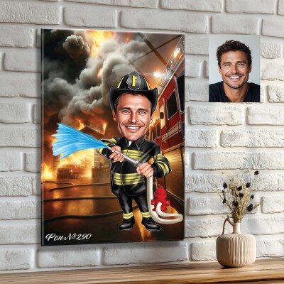 Стъклена карикатура на мъж пожарникар