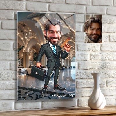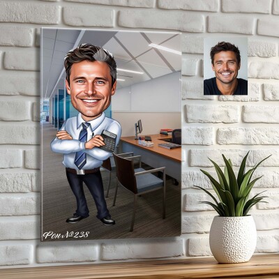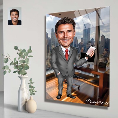 Стъклена карикатура на мъж - Офис ден
