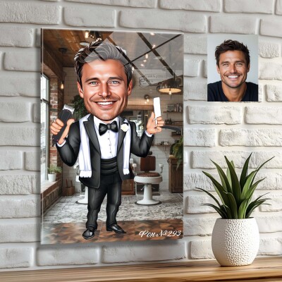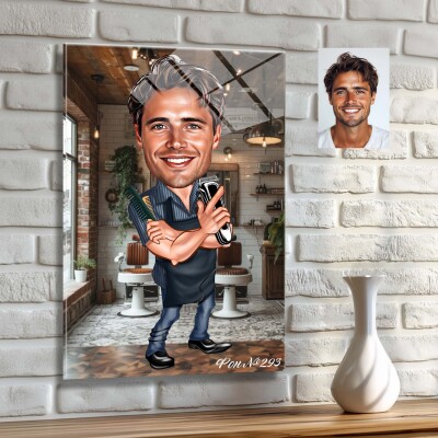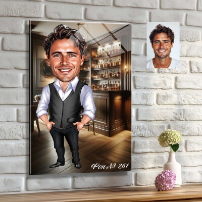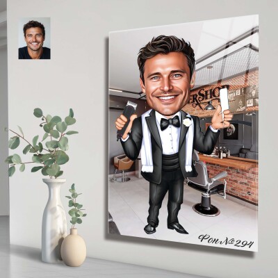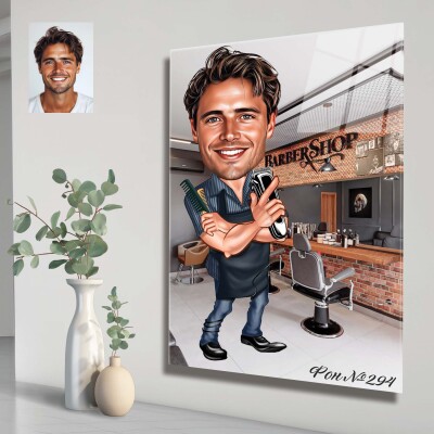 Стъклена карикатура на мъж бръснар (вариант 2)