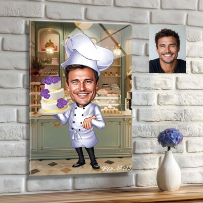 Стъклена карикатура на мъж с торта - сладкар