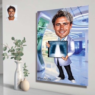 Стъклена карикатура на мъж рентгенолог
