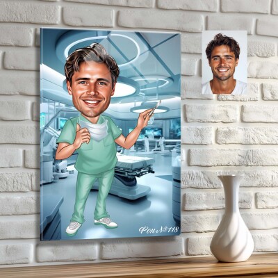 Стъклена карикатура на мъж лекар със скалпел