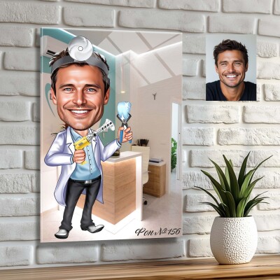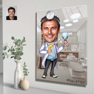 Стъклена карикатура на мъж зъболекар