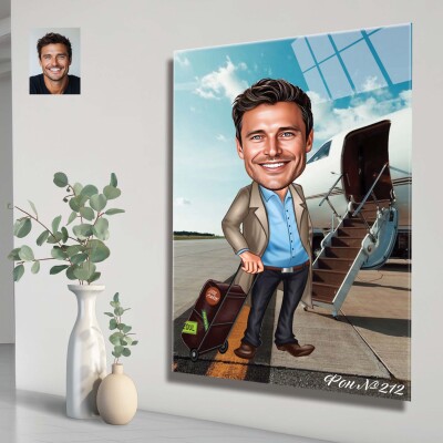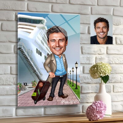 Стъклена карикатура на мъж пътешественик