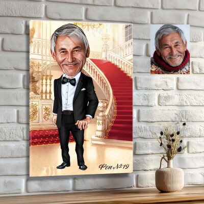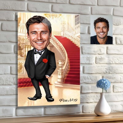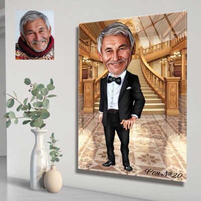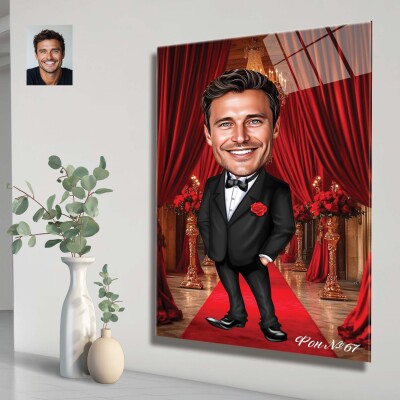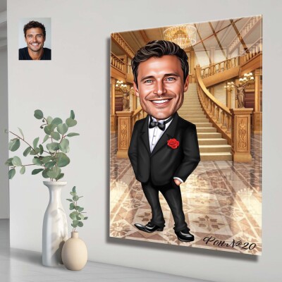 Стъклена карикатура на мъж с костюм - Стилна вечер