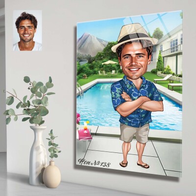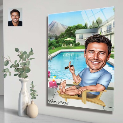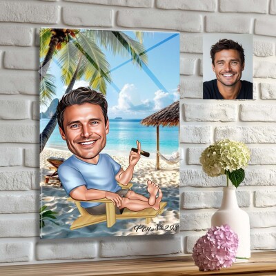 Стъклена карикатура на мъж на шезлонг - Лятна почивка