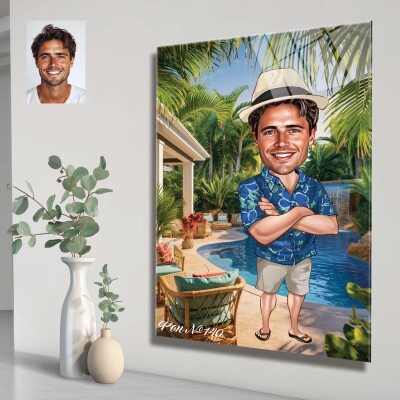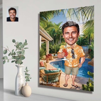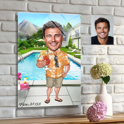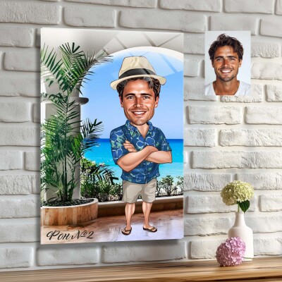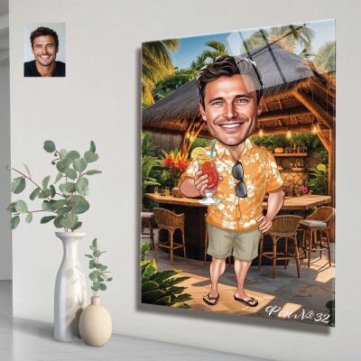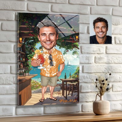 Стъклена карикатура на мъж с коктейл - Плажен бар