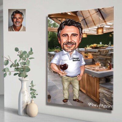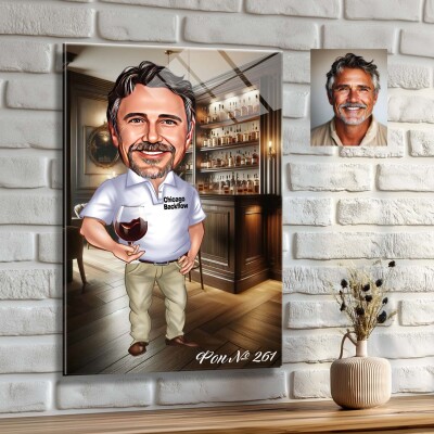 Стъклена карикатура на мъж с вино - Винена дегустация