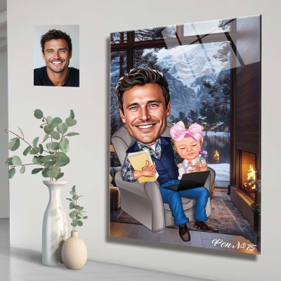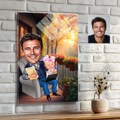 Стъклена карикатура на баща и дъщеря