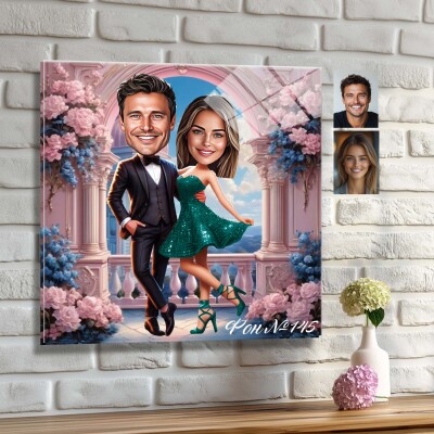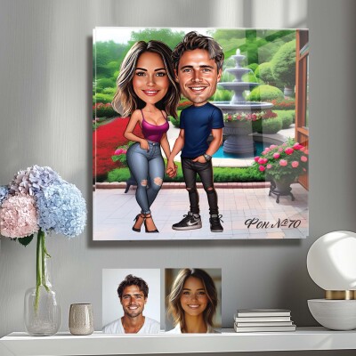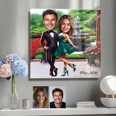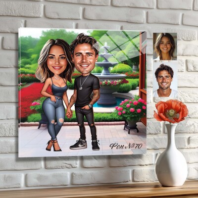 Стъклена карикатура Двойка - Романтична разходка