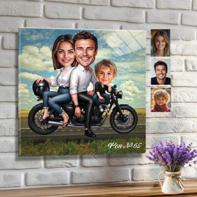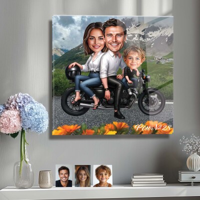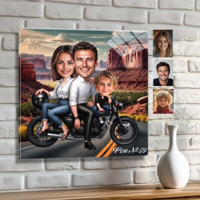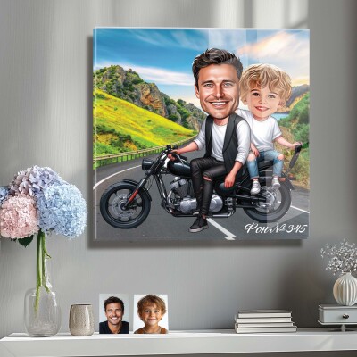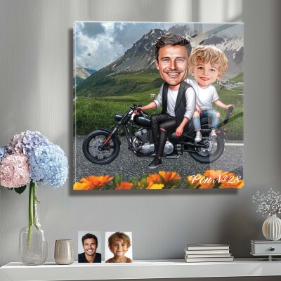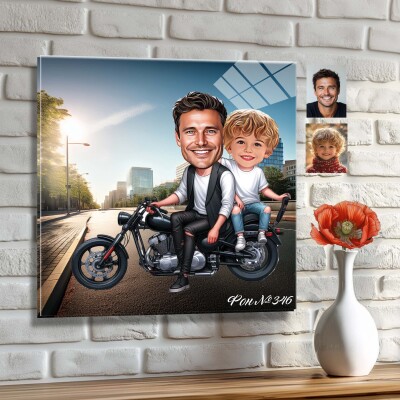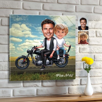 Стъклена карикатура на баща и син - Разходка по мъжки