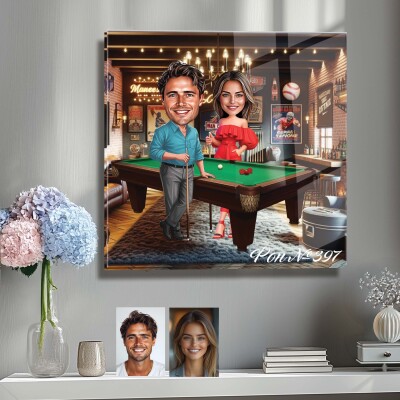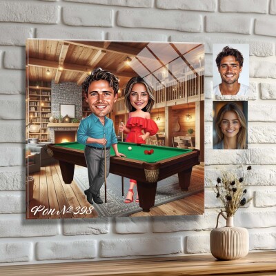 Стъклена карикатура на двойка - Билярд за двама, снукър