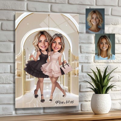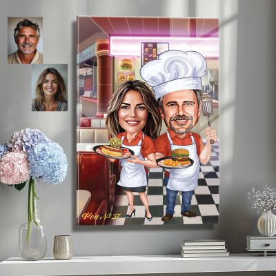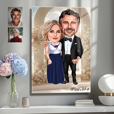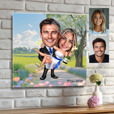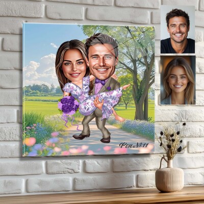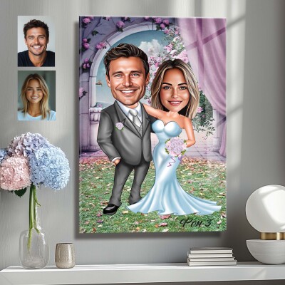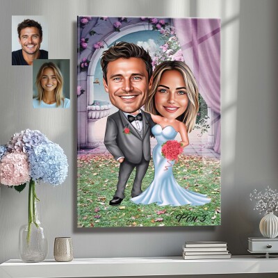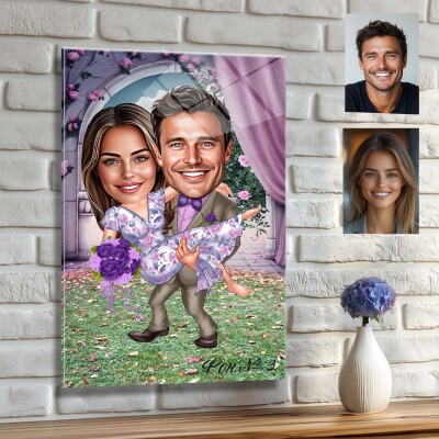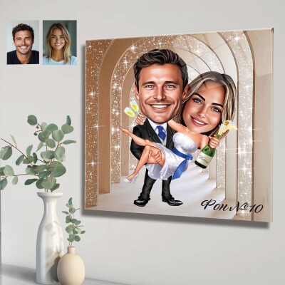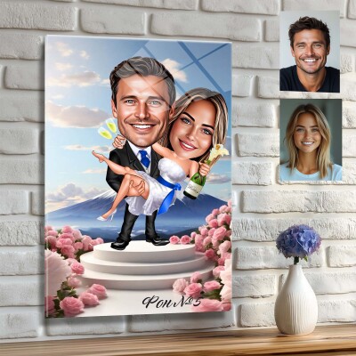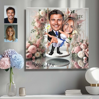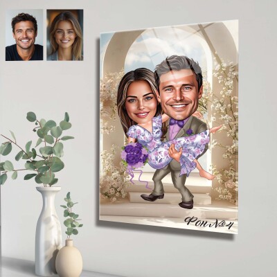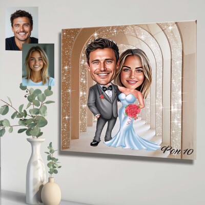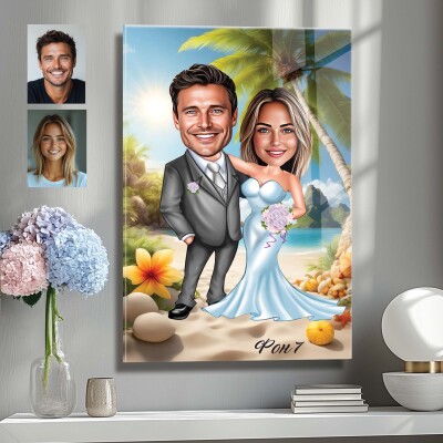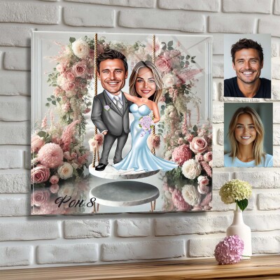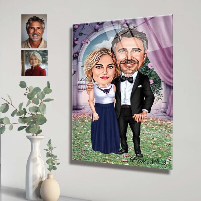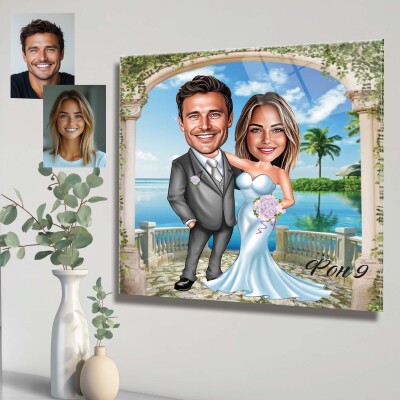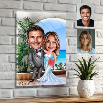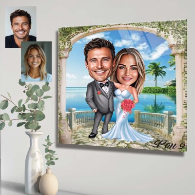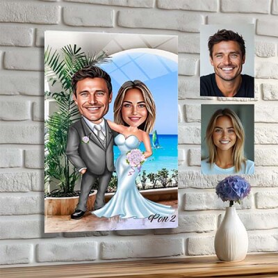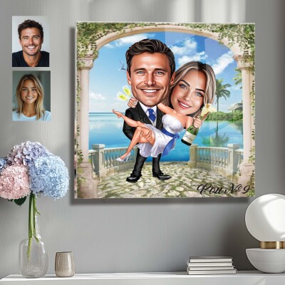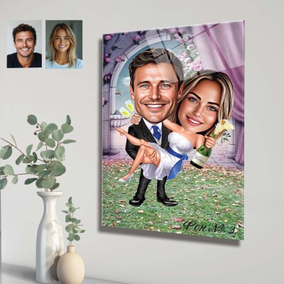 Стъклена карикатура на мъж и жена - Двойка младоженци