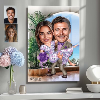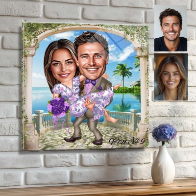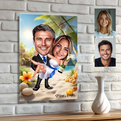 Стъклена карикатура на младоженци - Сватбено пътешествие