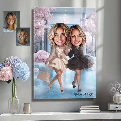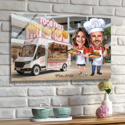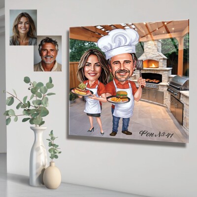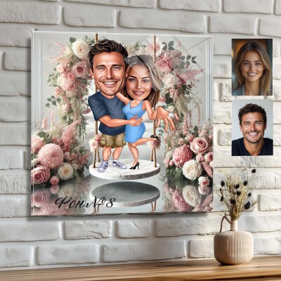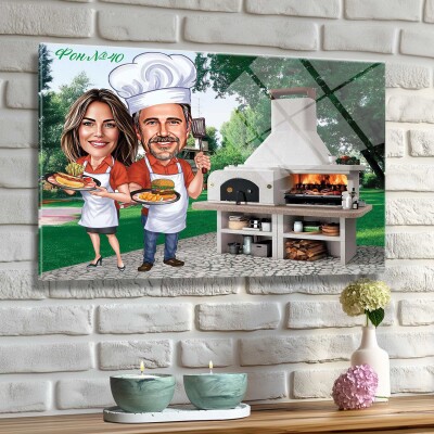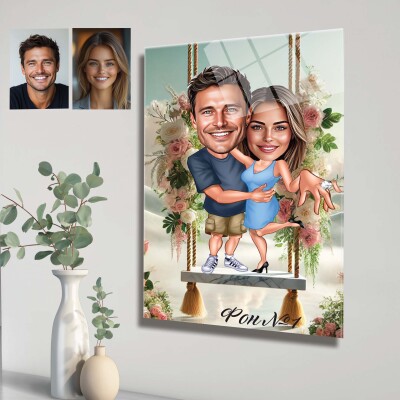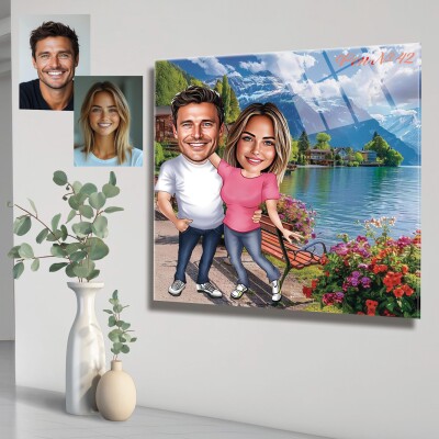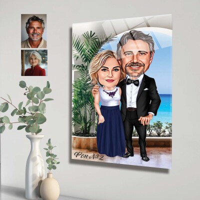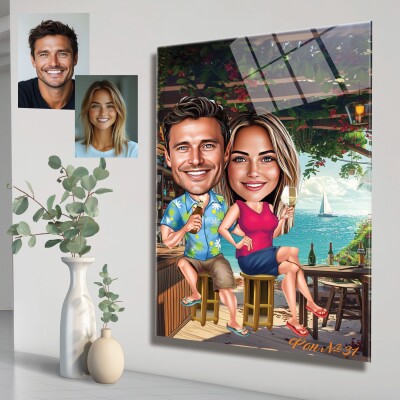 Стъклена карикатура на мъж и жена - Романтична почивка