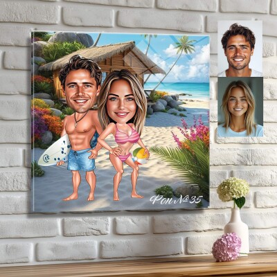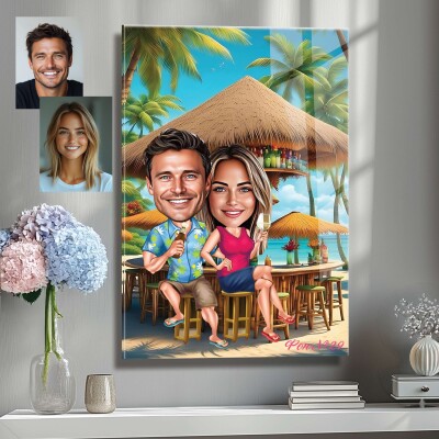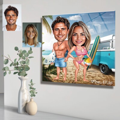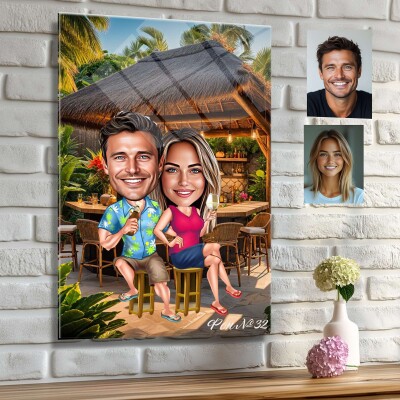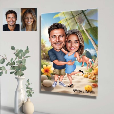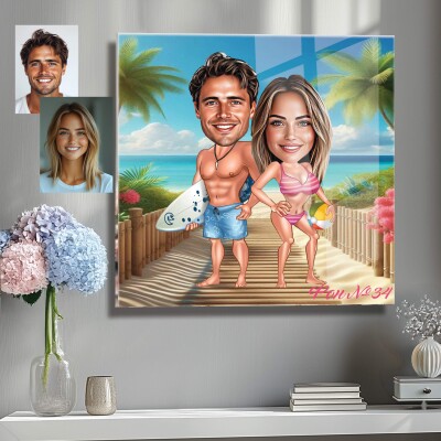 Стъклена карикатура на мъж и жена - Ваканция на море