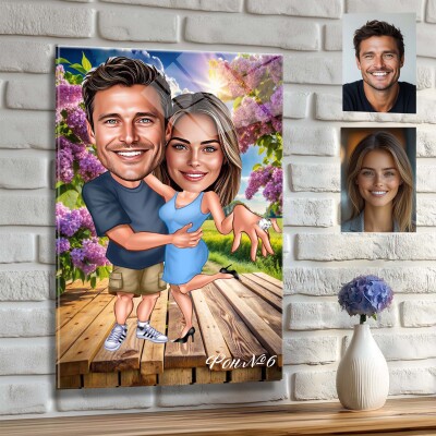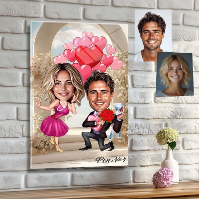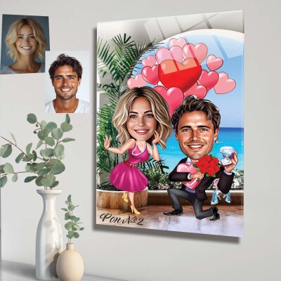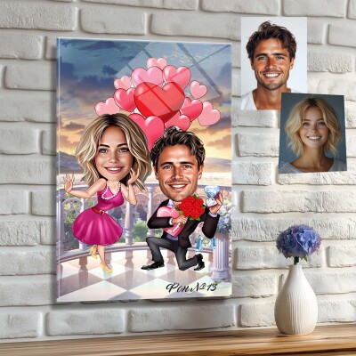 Стъклена карикатура на мъж и жена - Предложение (Любов)