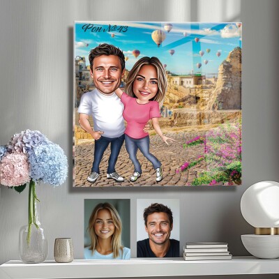 Стъклена карикатура на мъж и жена - Годеници на пътешествие