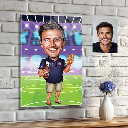 Стъклена карикатура на мъж с бира и хотдог - Запалянко (фен)