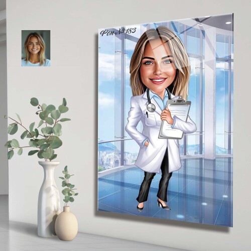 Стъклена карикатура на жена лекар