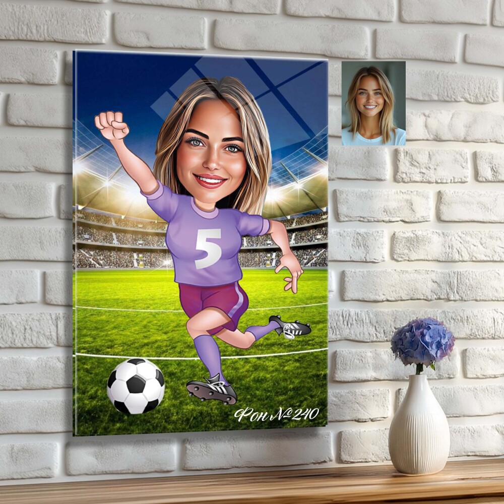 Стъклена карикатура на жена футболист - Играем за победа