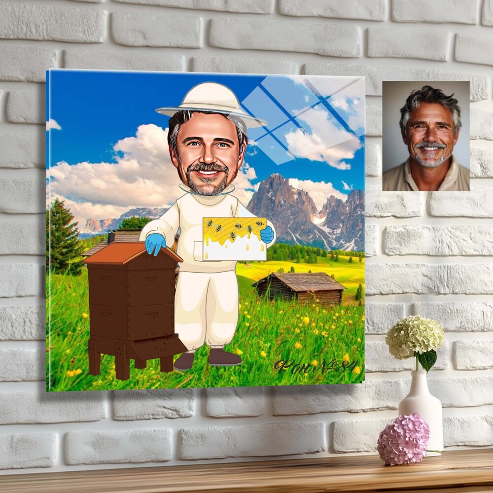 Стъклена карикатура на мъж пчелар