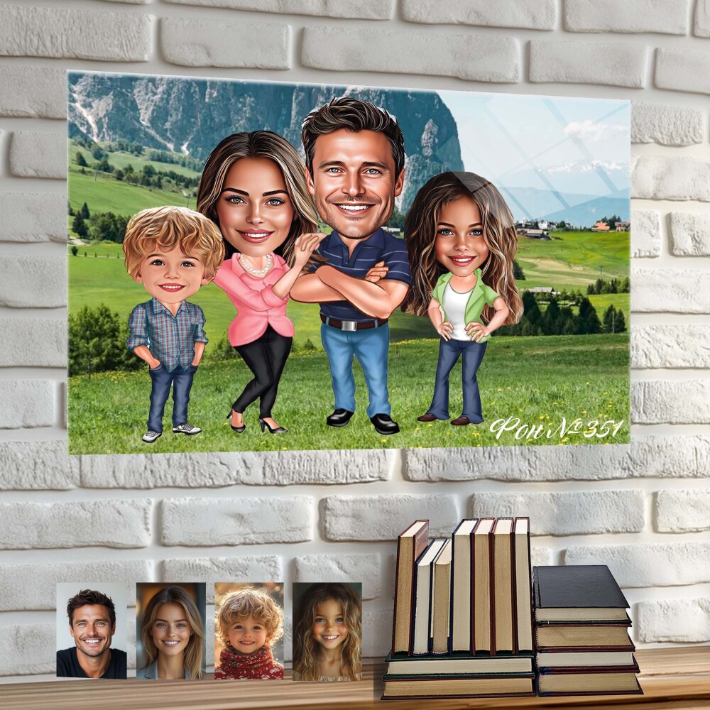 Стъклена карикатура на семейство