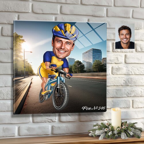 Стъклена карикатура на мъж с колело - колоездач (Вариант 2)
