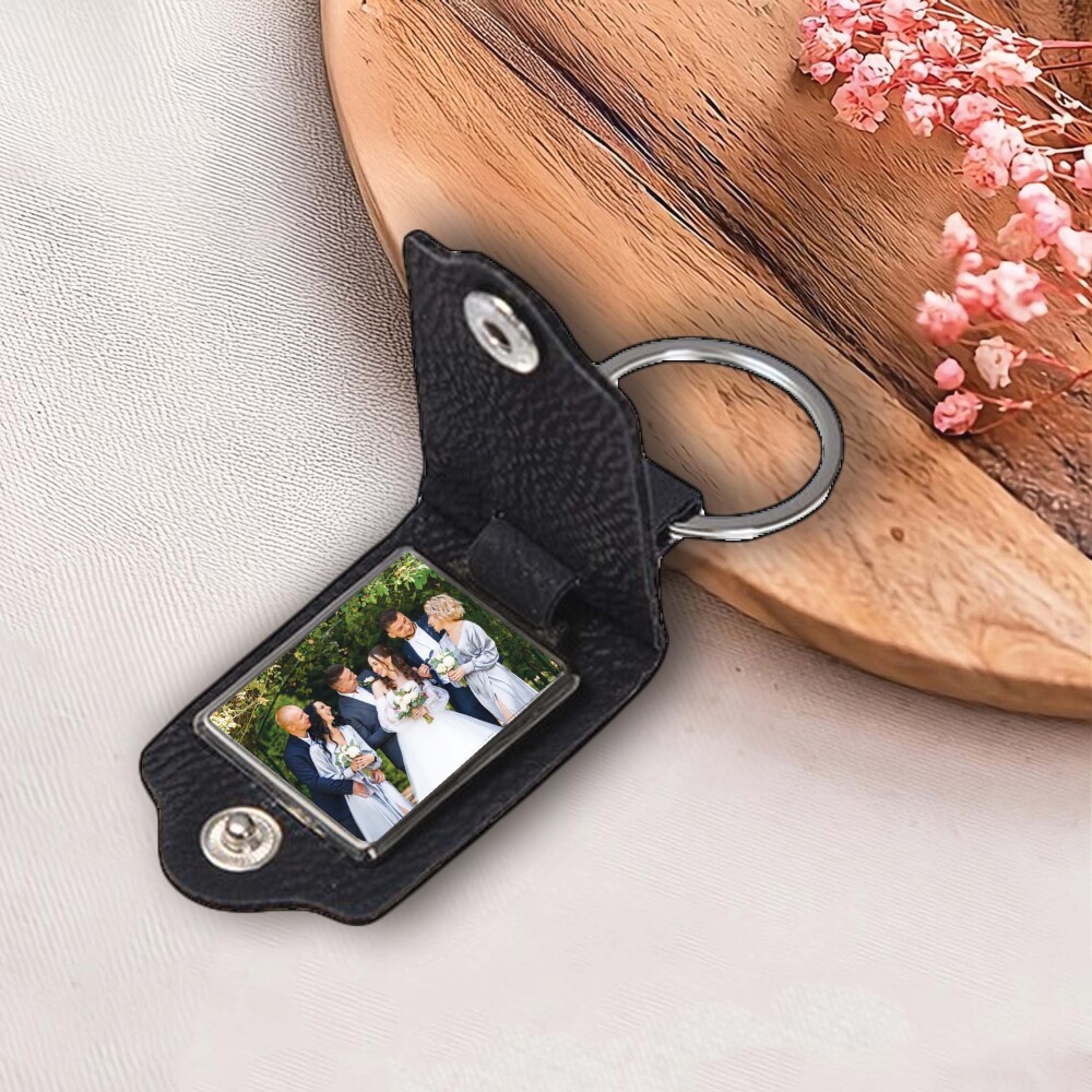Правоъгълен кожен ключодържател в който може да запечатате любим спомен със снимка, както и да добавите персонализиран надпис за скъпите хора до Вас. Идеален подарък за рожден ден, имен ден, нов дом или просто ей така.