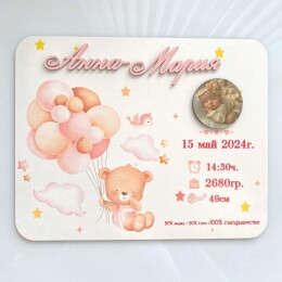 Месечинки за проследяване на първата година на новородено с поставка във формата на цвете и дървени кръгчета с месеци, идеални за декорация на детската стая и създаване на незабравими фотографии на всеки момент от растежа на вашето дете. Прекрасен подарък, който ще помогне на родителите да запазят спомените от тези ценни мигове.