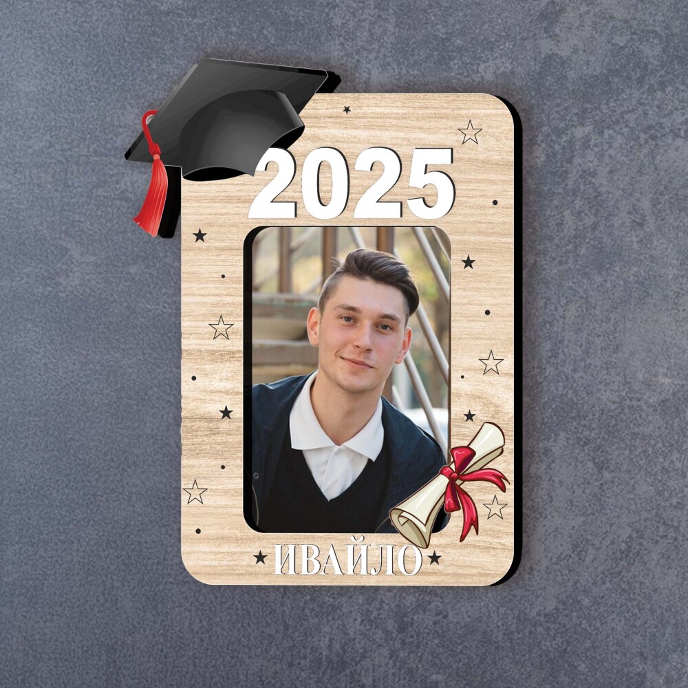 Магнит за подарък на гостите на абитуриентски бал със снимка и персонален надпис с името на завършващият.